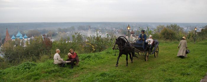 Давно пора отметить, что в фильме много юмора — то нежного, то с заметной подковыркой. Михалков дает зрителю перевести дух, именно поэтому трехчасовое полотно смотрится на одном дыхании.