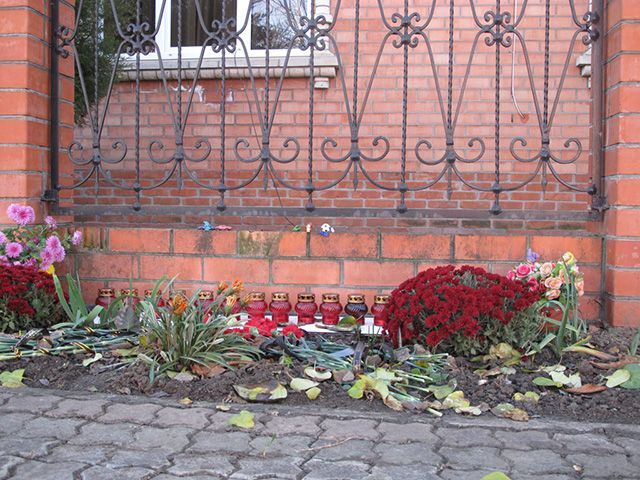 У дома перед резной оградой лежат цветы. Тут же стоят рядком двенадцать лампадок. На калитке предупреждение: «Осторожно, злая собака». Но никакой собаки за забором нет. Гробовая тишина была ответом на мой стук. Из соседнего дома вышел пожилой мужчина. Взгляд полон скорби. Это Владимир Сребный, отец Натальи Касьян, которую с 14-летним сыном убили в доме Аметовых.