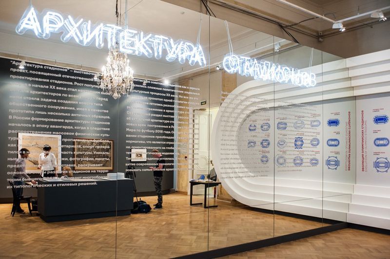 Здесь к футбольному празднику подготовили увлекательный рассказ о спортивных аренах — как старых, доставшихся в наследство от СССР, так и ультрасовременных, возведенных специально к мундиалю. Анфиладу здания МУАР заполнили огромные архитектурные чертежи, макеты, фотографии реализованных проектов: вот стадион «Динамо», спорткомплекс в Лужниках, а там ленинградский «Стадион имени Кирова» и другие сооружения, поражавшие современников размахом и оригинальностью решений. В их архитектуре воплощены самые смелые и актуальные тенденции той эпохи.