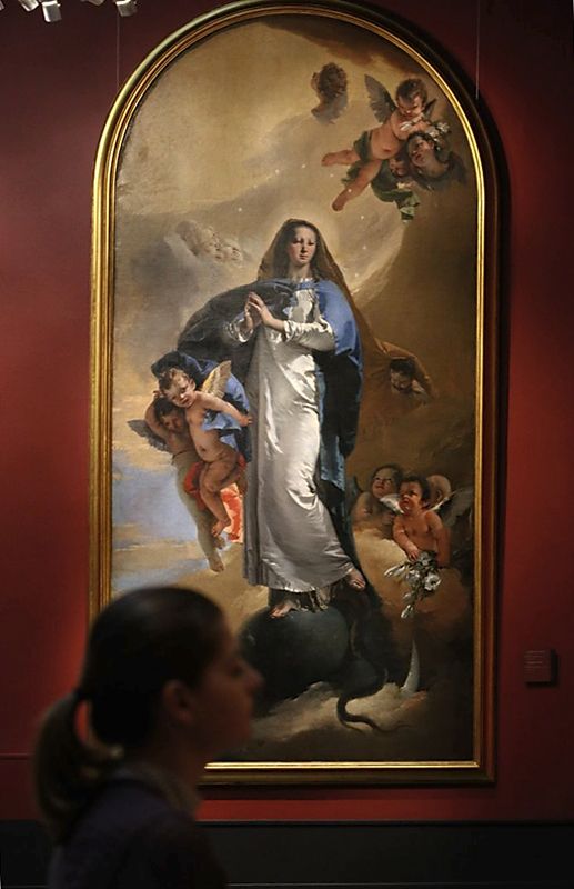 Тьеполо-старший представлен масштабными, идеально выверенными холстами «Время, открывающее Истину» (около 1745) и «Непорочное зачатие» (1733–1734). Второй «гвоздь» экспозиции — Каналетто: лучезарные виды Венеции — ведуты, с переливающимися синими и желтыми красками. Произведения поражают документальной точностью: известно, что мастер использовал камеру-обскуру. Кроме того, на его картинах хорошо отражен быт венецианцев. В частности, на полотне «Возвращение Бучинторо к молу у Дворца дожей» (около 1730) можно разглядеть не только изысканную архитектуру города, но и отделанную золотом галеру, возвращающуюся после обряда обручения с морем (каждый год дож бросал в воды Адриатики золотой перстень, что символизировало морскую мощь Венецианской республики). Рядом — множество гондол, на борту которых влюбленные парочки и загадочные незнакомцы в масках.