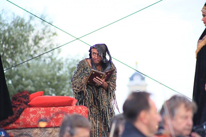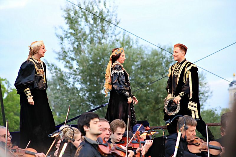 Подмосковье богато архитектурными красотами — свидетелями непростой средневековой истории. Кремлевские и монастырские стены, храмы и звонницы — лучшие «декорации» для русских исторических опер, которых немало в нашем классическом наследии. Произведения Глинки, Римского-Корсакова, Мусоргского, Бородина словно созданы для этих мест. Трудности возникают в основном с акустикой и погодой. С микрофонной подзвучкой уже научились справляться — спектакль в Серпухове прошел без потерь: не фонило, звук не пропадал, баланс внутри оркестровых групп, а также между инструментальным коллективом, хором и солистами был найден, а дикция певцов оказалась на высоте. Повезло и с погодой: беспрестанно лившие дожди утихли как раз ко дню спектакля, а прохлада позднеавгустовского вечера не смогла повлиять ни на артистов, ни на публику.
