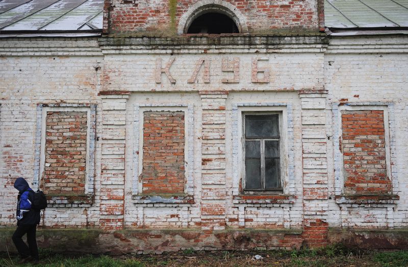 Как так сложилось, что библиотека здесь оказалась лишней? Вон она — крепкая русская изба на перекрестке, который раньше был центральным. Сейчас это окраина — стык между многоэтажками и деревней. Окна выбиты, крыша завалилась. Я заглянула внутрь — везде валяются книги. Прямо в грязи и пыли. Из нового только замок на двери: знать, повесили недавно.