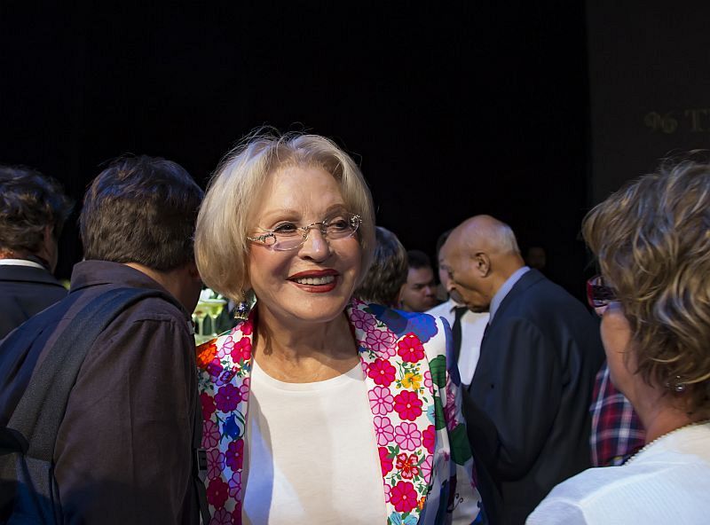 На Новой сцене, построенной в прошлом сезоне и уже ставшей любимой, идея театра-праздника развернулась во всей чрезмерности: сверкали составленные пирамидами бокалы (шампанское по окончании церемонии предлагалось всем — хозяевам и гостям), радовали глаз разноцветные букеты и изящно перевязанные ленточками книги, повествующие об истории театра. Здесь умеют хранить память. Пишут летопись тщательно — видеоролик со всеми событиями прошлого сезона, значительными и не очень, стал эпиграфом к новому старту. Мелькали отрывки из премьер и улыбались с экрана юбиляры, новобранцы, публика; вот первая встреча с Новой арбатской сценой и уютный простор музея-квартиры отца-основателя; кадры со стройплощадки, в которую превратилось здание, известное как Театр имени Рубена Симонова (сейчас — вахтанговский филиал), и забавные свидетельства экстремальных «звездных» разминок в собственном фитнес-центре. Финал хроники настраивал на успех: фрагмент теленовостей, где на отчет министра культуры о театре, как одном из самых экономически эффективных, президент Владимир Путин реагирует лапидарно: «Здорово!» Зал взорвался аплодисментами, под них актрису Юлию Рутберг поздравили с присвоением звания народной артистки России. Теперь оно, ранее не лимитированное в количественном исчислении, — раритетно и присуждается не более 4–5 раз в год.