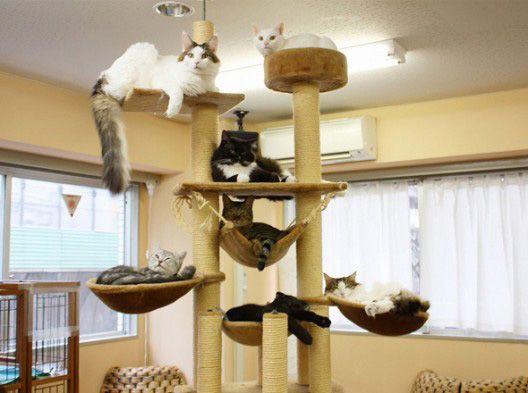 Животные бродят между столиками, играют с детьми, запрыгивают на колени к гостям и, мурлыча, позволяют себя гладить. Устав от общения, нежатся на своих «ложах» прямо в зале, не обращая внимания на людей.