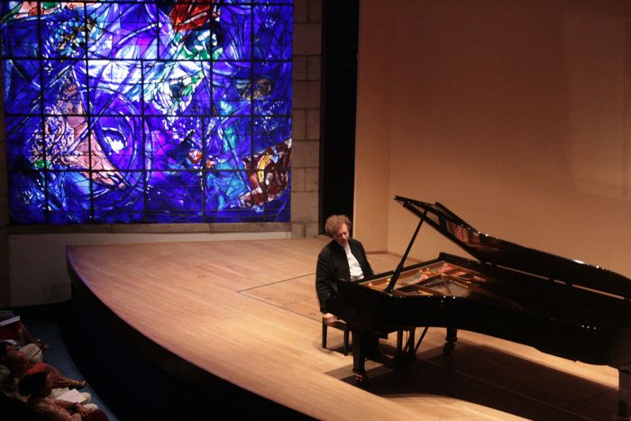 В Парижской филармонии открылась выставка «Марк Шагал и триумф музыки». Здесь представлено около 270 произведений — картины, рисунки, скульптуры, макеты декораций, театральные костюмы. Подавляющее большинство работ хранятся у наследников художника и демонстрируются широкой публике впервые. Корреспондент «Культуры» встретился с музыкальным директором экспозиции, известным пианистом Михаилом Рудем.