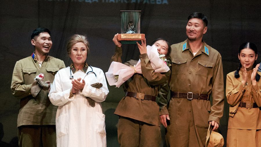 В центре спектакля «Халхин Гол. Тангариг» Бурятского театра драмы имени Хоца Намсараева тоже оказалось реальное историческое лицо — Чэмэд-Цэрэн, юная санитарка полевого госпиталя, развернутого в окрестностях реки Халхин-Гол, где весной и летом 1939 года шли бои монгольской и Красной армий с японскими захватчиками. Чэмэд-Цэрэн сейчас 103 года, о себе и своих боевых подругах она рассказала худруку театра Олегу Юмову, драматург Геннадий Башкуев написал на основе ее рассказа пьесу. Как и осетинский спектакль, «Халхин Гол. Тангариг» — масштабный эпос, где параллельно существуют несколько сюжетных линий. Самая привлекательная, на мой взгляд, связана с историей любви русского летчика Василия и бурятской девушки Мунхцэцэг. Сыгравшая эту роль Рая Бадмаева покорила жюри завершившегося сезона «Золотой маски», удостоившего ее специального приза.