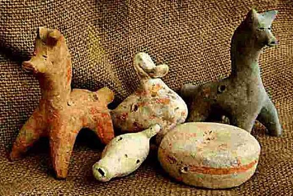 И с этим не поспоришь, хотя рязанским глиняным фигуркам не хватает праздничности, присущей знаменитой дымковской игрушке. Не похожи они и на северных каргопольских полканов, архаичных по пластике, но при этом ярко расписанных. Фантазию рязанских мастеров ограничивают особенности материала. Местная глина — недостаточно пластичная, зато чистая, почти без песчинок. Поэтому игрушки — лаконичные, порой грубые, даже примитивные, будто созданные еще до нашей эры. Кстати, изначально, по мнению некоторых исследователей, глиняные фигурки были не бытовыми, а культовыми предметами. Связанные с языческими верованиями, они олицетворяли разные космогонические силы. Скажем, конь или олень ассоциировались с солнцем. Птицы — с воздушной стихией. А женщина, которую нередко изображали с младенцем на руках, была матерью сырой землей.