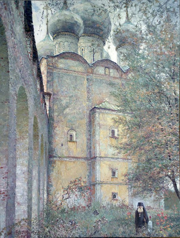 Каждый из художников работает в своем ключе. Глава семейства пишет картины-аллегории. Вот, скажем, большое полотно «Был свет истинный» (1989): подростки спешат на показ фильма «Маленькая Вера» и не замечают мать с младенцем, стоящую на дороге к храму. Отдельная любопытная серия — сдержанные по колориту пейзажи: серые, с жемчужными переливами, выражающие красоту северной природы.
