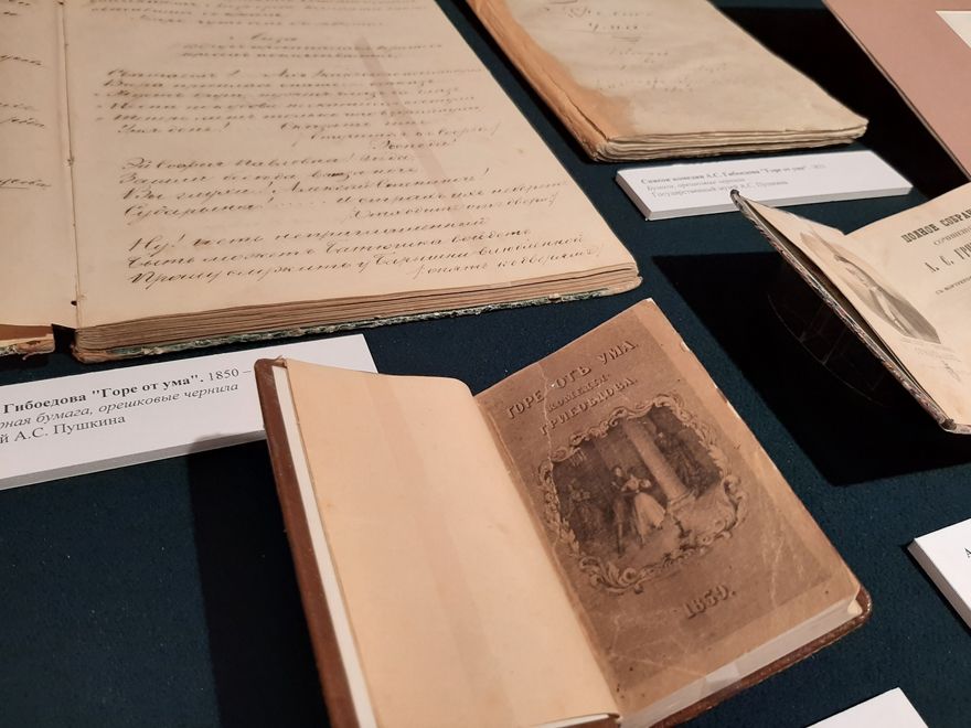 Среди экспонатов — знаменитые рукописные альбомные списки «Горя от ума». Первые «ласточки» появились зимой 1823 года. Ажиотаж был неслыханный. «Все просят у меня манускрипта и надоедают», — жаловался Грибоедов своему другу Степану Бегичеву.
