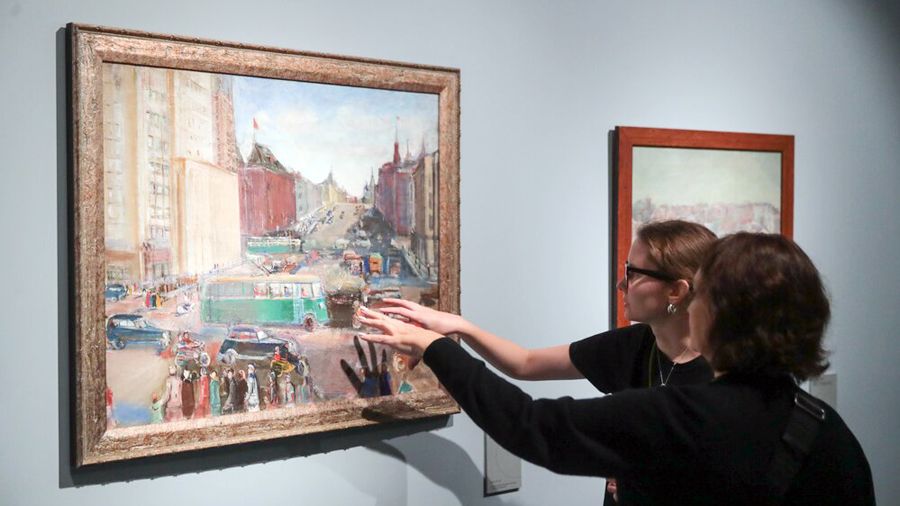 Все эти детали — отсылки к картинам Лабаса: полным воздуха, света, какой-то отчаянной надежды и веры в человека, и при этом — хрупкости. Интересно, что одним из его учителей — о котором сам Лабас вспоминал с большой теплотой — был Петр Кончаловский: художник совершенно иного склада, писавший более плотно и ярко. Как утверждал Лабас, мэтр сразу отметил необычное дарование своего ученика: «Один раз, глядя на мои работы, Кончаловский сказал: «Вы явно идете совсем другой дорогой, и для Вас это правильно. У Вас есть свой характер, свой колорит».