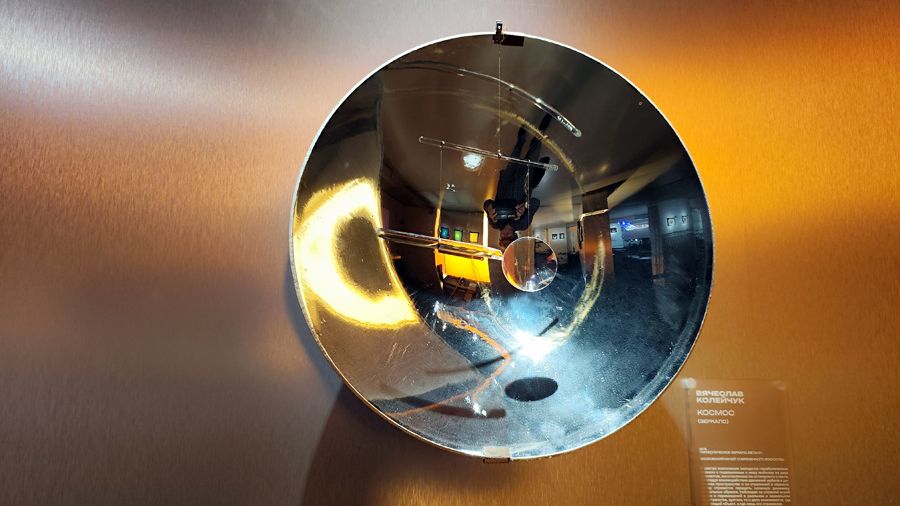 Самонапряженные конструкции Колейчука заслуживают отдельного обстоятельного рассказа. Вообще этого художника-новатора, основоположника российского кинетизма на выставке очень много: скульптуры, композиции с зеркалами, графические модели, картины, «рукотворная голография», работы учеников. И даже завершает экспозицию мультимедийная инсталляция «Пространство мысли», созданная по мотивам работ Колейчука.