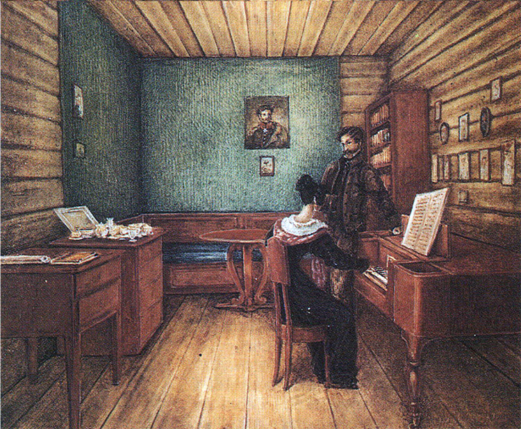 В Петровском заводе камера была уже у каждого своя, и женщины могли находиться там с утра до вечера. По мере своего достатка ссыльные вносили деньги в артель: по большому счету, это была одна большая семья с общими радостями и горестями. На акварели Бестужева можно увидеть: Мария Николаевна музицирует, рядом шкаф с книгами, полкомнаты затянуто зелеными шторами, которые прислали сестры. Они выписали их из Парижа, а Волконская закрыла ими стены, чтобы было похоже на обои.