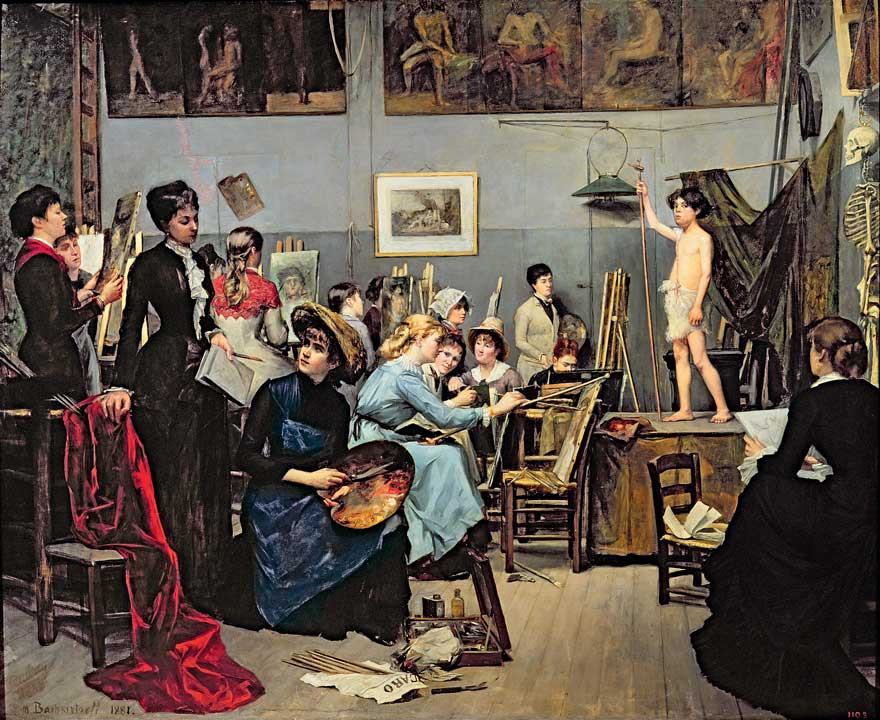 Другая известная художница XIX века Мария Башкирцева прославилась как очень экстравагантная фигура. Прожившая лишь 25 лет и умершая в 1884 году от чахотки, она переписывалась с Ги де Мопассаном, оставила подробные дневники, которые вела с 12 лет. Именно те записи сделали ее знаменитой, 105 тетрадей перевели на многие языки. Поклонницей Башкирцевой была Марина Цветаева. Мария Константиновна создала более 150 картин и 200 рисунков. Одной из наиболее известных вещей является весьма выразительный «Автопортрет с палитрой» (1880).