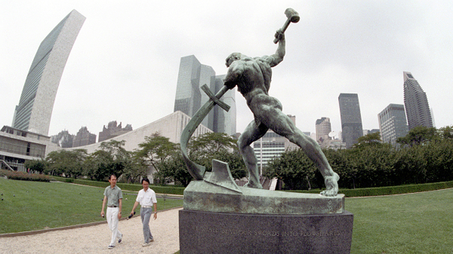 Многие понимают, что миру необходим новый глобальный договор, который создаст более справедливое мироустройство на Земле. Правда, воспринимают такой миропорядок по-разному, как и ветхозаветный лозунг, некогда выбитый на обелиске рядом с комплексом зданий Организации: «Они перекуют мечи свои на орала, и копья свои — на серпы; не поднимет народ на народ меча и не будут более учиться воевать» (там же неподалеку стоит скульптура Евгения Вучетича, изобразившего обнаженного, мускулистого кузнеца, усердно занимающегося перековкой).
