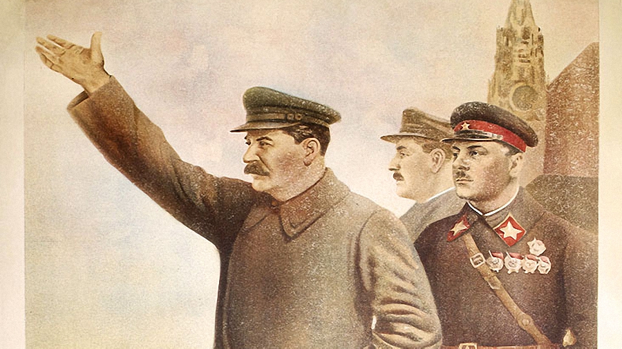 На кадрах кинохроники — стоящие на трибуне Мавзолея руководители Советского Союза. Сталин о чем-то переговаривается с Буденным, в эту беседу вступает Ворошилов, Молотов пребывает в задумчивости, Берия молчалив, чуть поодаль виднеется Калинин, прямо перед собой смотрит Жданов...
