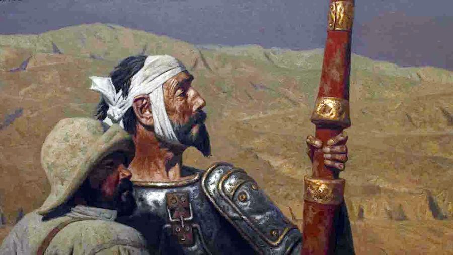 Гелий Коржев. «Дон Кихот и Санчо Панса» (фрагмент), 1984; (на анонсе) «Автопортрет» (фрагмент), 1980