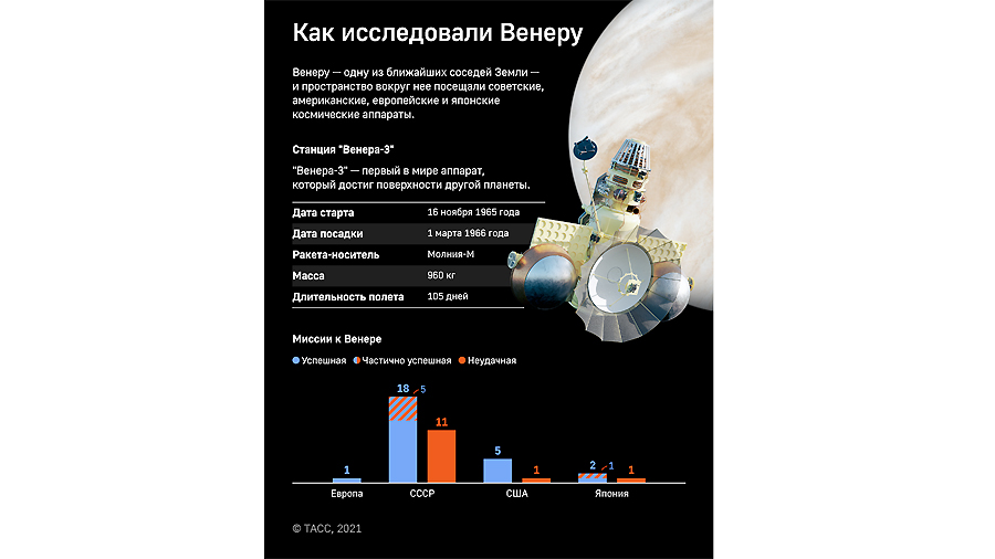 60 лет назад, 16 ноября 1965 года, с космодрома Байконур был запущен беспилотный космический корабль «Венера-3» — автоматическая межпланетная станция, предназначенная для исследования далекой планеты. Ее поверхности удалось достичь спустя 3,5 месяца, 1 марта 1966-го.