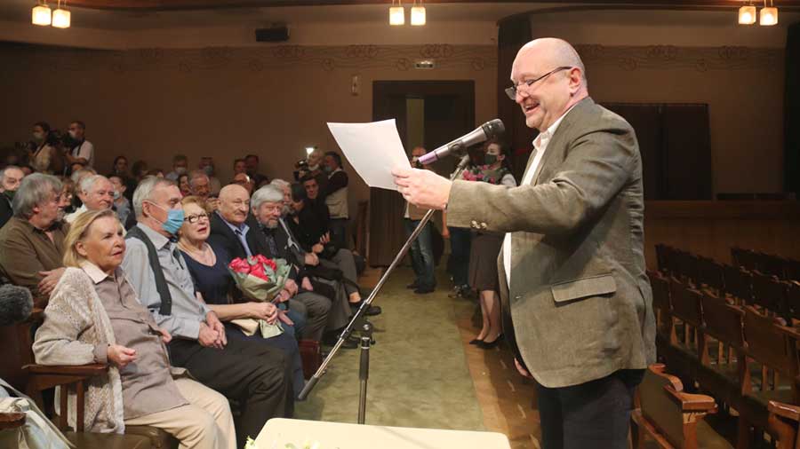 По традиции, давно сложившейся в драматургии, на первой встрече после отпуска поздравили тех, чьи юбилеи выпали на период небывало долгого в этом году отдыха, — представителей всех цехов и служб театра: актеров и гардеробщиков, осветителей и билетеров, инженеров и костюмеров. Среди них заведующий музыкальной частью театра Василий Немирович-Данченко (внук великого режиссера, педагога и драматурга), который летом отметил 80-летие, и из них более полувека связано с МХТ.