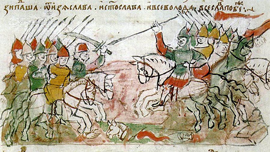 На фотографиях: "Битва на реке Немиге". Миниатюра из Радзивилловской летописи. (На анонсе) Аполлинарий Васнецов "Деревянный город. Москва XIV века", 1917, Государственная Третьяковская галерея.