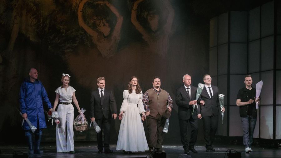 — Сценография напоминает музей наоборот. В музее, как правило, много картин и мраморные стены, у нас — одна картина и много «мраморных» блоков. Вы не первая, кто спрашивает, при чем здесь живопись. Герои романа Беляева — эстеты, люди с художественным вкусом: они слушают Рахманинова, рассуждают о картине Греза. Эту деталь не хотелось опускать. В ней есть что-то чеховское, когда люди и с хорошим образованием, и с богатым внутренним миром становятся действующими лицами пьес. Получилось или нет — этот вопрос пока без ответа. Спектакль набирает силу, он сложный, мы играем его нечасто. Хочется развиваться, идти дальше, ставить вопросы.
