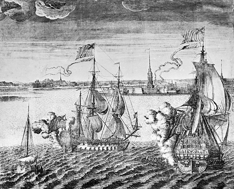 ...В этот день, на рассвете, преображенцы и семеновцы на трех десятках шлюпок под общим командованием Петра Михайлова (боевой псевдоним самодержца) и Александра Меншикова предпринимают дерзкую атаку на оснащенные пушками шведские парусники «Гедан» и «Астрильд». Невзирая на мощный заградительный артогонь неприятеля русские вплотную приближаются к вражеским кораблям, берут их на абордаж, захватывают и тут же празднуют викторию. Так, не имеющие ни малейшего опыта в подобных сражениях, вооруженные лишь мушкетами солдаты и офицеры Петра дают сокрушительную оплеуху видавшим виды морякам Карла XII...