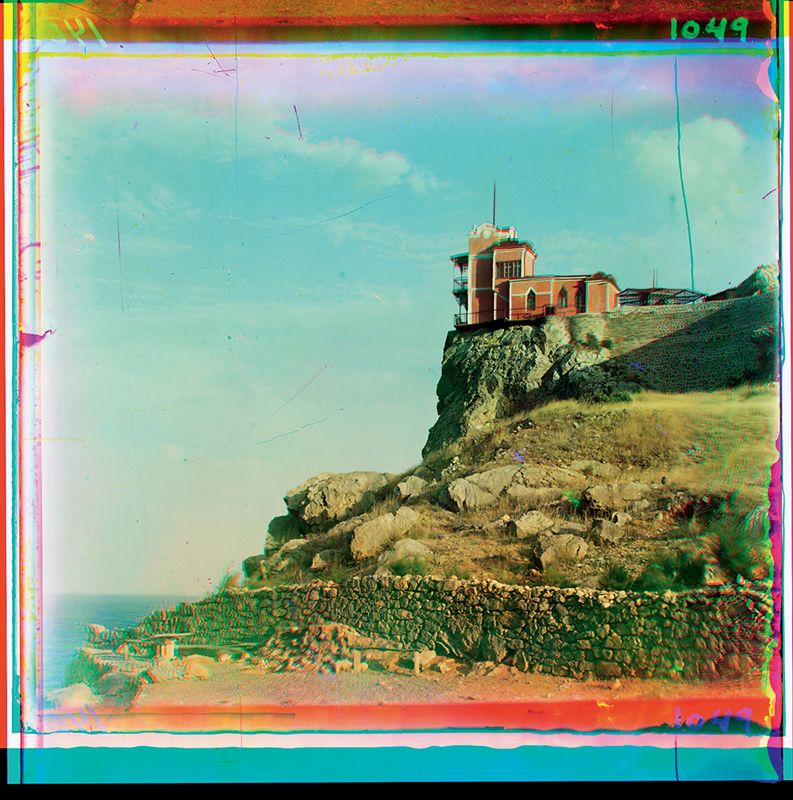 Пионер цветной фотографии и неутомимый путешественник был хроникером Российской империи. Заглядывая в разные уголки страны, в 1905-м он навестил и Тавриду. Экспедиция, включившая в себя также визиты на Кавказ и Украину, осуществлялась на деньги Общины святой Евгении. Предполагалось, что масштабная фотолетопись Прокудина-Горского будет напечатана на открытках. Однако из-за экономических проблем проект оказался свернут. Пластины с видами Крыма затерялись. В библиотеке конгресса США, выкупившей в 1948 году остатки коллекции у наследников, хранятся лишь четыре стеклянных негатива с пейзажами полуострова. В том числе — фотография «Ласточкиного гнезда», одного из символов Крыма. На удивительно ярком и четком снимке виден не ажурный неоготический замок, возведенный в 1912 году по заказу барона Штейнгеля, а более ранняя постройка — простой красно-белый деревянный дом.