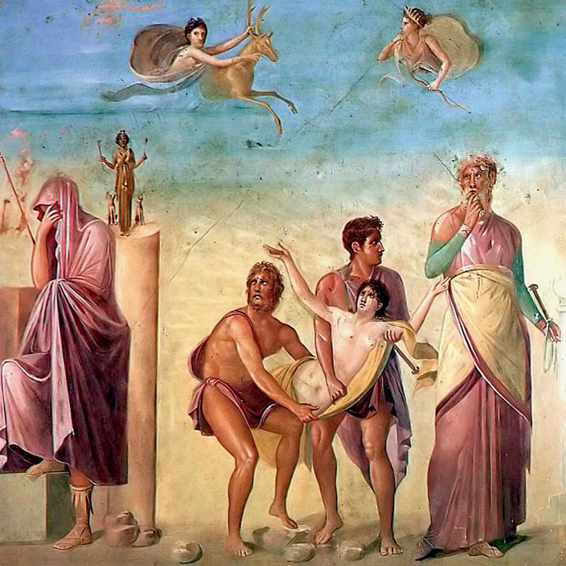 Страшное предсказание получил царь ахейцев Агамемнон перед походом на Трою. Разгневанная Артемида, богиня охоты, не давала его кораблям попутного ветра, доколе царь не пожертвует ей свою дочь Ифигению. Не дрогнула рука Агамемнона, за что по возвращении ему страшно отомстила жена Клитемнестра. Но, как гласили сказания греков, Ифигения не умерла — сжалившаяся богиня унесла ее в Тавриду, где в землях жестоких и диких тавров, в храме Артемиды дочь ахейского правителя приносила в жертву пленников. Однажды к ней в плен попали двое юношей, в которых она узнала своего брата Ореста и его друга Пилада. Вместе с ними Ифигения вернулась на родину.