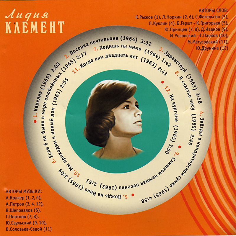 Каким-то непостижимым образом ленинградка Лидия Клемент сумела сконцентрировать на себе симпатии молодежи начала 60-х, покорив при этом сердца и более старших поколений. Кроме редкого сопрано, пусть не поражавшего широтой диапазона, зато глубокого, богатого полутонами, на нее работали утонченный облик и просвечивающая сквозь него душа. С одной стороны, это была девушка из толпы, такая, как все, с другой — совершенно особенная, аристократичная. Чуть слышная пряная тембровая горчинка словно намекала на короткую и трагическую судьбу.