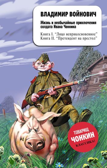 В 1975 году вышла первая часть «романа-анекдота» Владимира Войновича «Жизнь и необычайные приключения солдата Ивана Чонкина». Имярек — своеобразный «двойник» Василия Тёркина. Внешне неказистый — это сближает его с заглавным персонажем великой поэмы, не блистающим неземной красотой. Однако Тёркин прост да смекалист, а Чонкин попросту глуп. Герой Твардовского сражается на фронте (не задерживается даже в госпитале), «двойник», забытый командирами, надолго застревает в тылу. Подвиги последнего утрированно несуразны: он проявляет героизм, обороняясь не от нацистов, а от своих. Нелепый Иван также представлен «обыкновенным сыном своего народа». По авторской логике, Чонкин — наитипичнейший русский. Поклонники Войновича нередко сравнивают его опус с бестселлером Ярослава Гашека. Казалось бы, их роднит тотальная карнавализация — не знающие границ сатира с юмором. Реальность агонизирующей Австро-Венгерской империи, полная бессмысленных запретов и прочих глупостей, якобы сильно схожа с советской действительностью. Но подобная параллель суть непомерная и некрасивая лесть Войновичу. Швейк — не дурак, а ловкий авантюрист, который, сталкиваясь со всеобщими проявлениями идиотизма, поднаторел в доведении любой ситуации до абсурда. Не будем забывать и о времени создания романа Гашека, написанного после краха Австро-Венгрии — то есть на волне становления маленькой, но гордой чешской нации. Есть ли здесь хоть какое-то сходство с «Чонкиным»? Ответ очевиден.