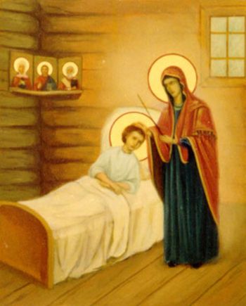 Крестный ход, шедший поначалу по своему обычному маршруту — от курского Знаменского монастыря в Коренную пустынь, из-за сильного дождя свернул с привычного пути и оказался во дворе купеческого дома курян Мошниных. Тяжело больного отрока Прохора его мать поднесла к чудотворной иконе, вследствие чего мальчик вскоре поправился. Незадолго до этого, как сказано в житиях, набожный подросток во сне «увидел Пресвятую Богородицу, Которая обещала посетить его и исцелить от болезни. Проснувшись, он рассказал это видение своей матери». Пройдут десятилетия, и Прохор Мошнин прославится по всей Руси как старец Серафим Саровский. К нему потянутся нескончаемые вереницы паломников, умом и сердцем приняв Серафимову заповедь «Спаси себя сам, и вокруг тебя спасутся тысячи».